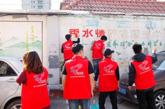 队员们到达养老院后立刻分好组,好分工,拿好各自的工具,纷纷展开墙绘翻新工作。大家聚精会神,专心致志,一笔一划的还原出墙上美丽的风景,原本墙上的彩绘已经几乎看不到了,经过同学们的精心补色与重绘,敬老院已暗淡破败的墙上重现了生机。