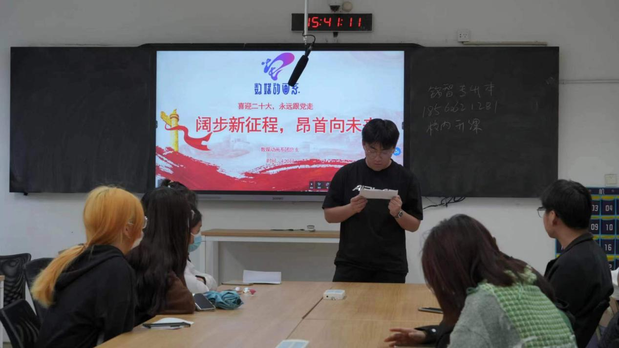 为深入学习领会党的二十大报告精神,认真落实省第十二次党代会精神,教育引导广大青少年在回顾党的青年运动史中赓续红色血脉,在学习百年团史中汲取奋进力量,肩负起自身的使命和担当,把青春奋斗融入党和人民事业,数媒动画系积极组织全系团员开展“阔步新征程,昂首向未来”主题团课活动。