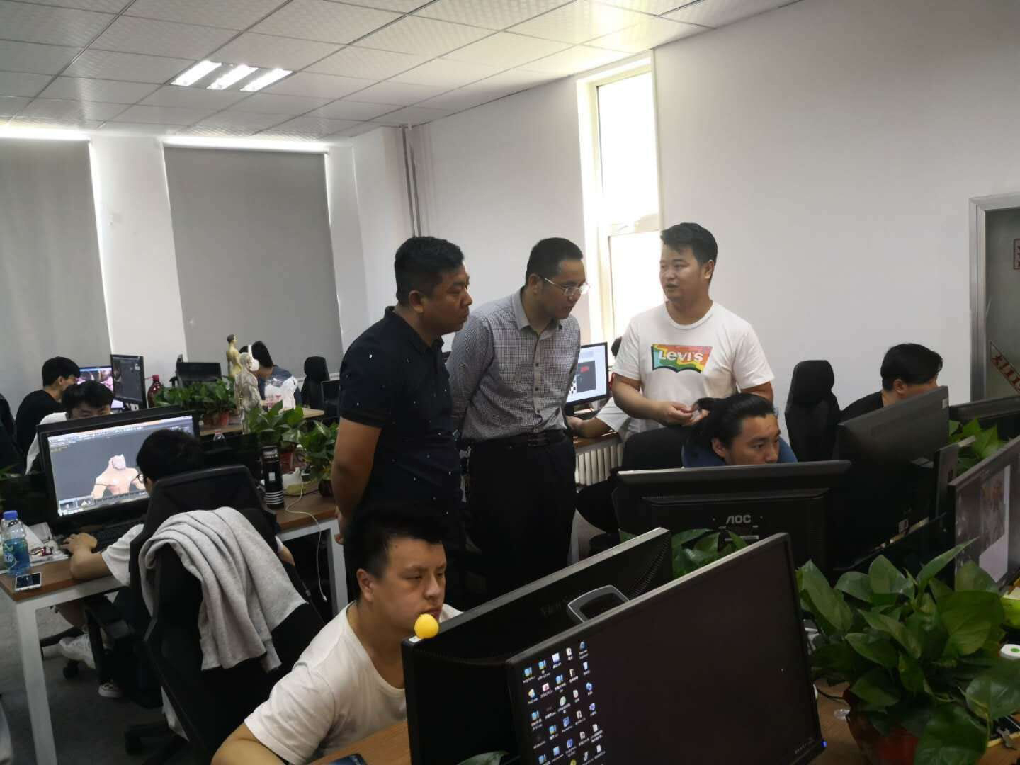 赵总和杨总分别介绍了企业有关Maya 3d MAX C4D的主要应用技术,系统阐述了用人所需,并带领考察小组参观了其目前一线项目制作与工作人员的技术操作。使考察小组进一步认知到当前企业所需,使教学更加专业化,结构化,同时,企业人员高涨的工作热情,分工合作的团队精神,也映射着在促进学生提升专业职能的同时,也需加强职业素养以及团队协作精神。