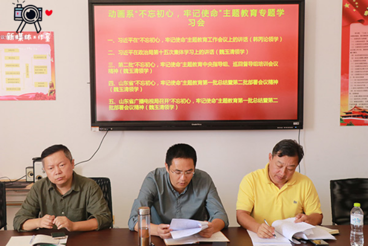 系主任韩丙伦就当前开展主题教育的工作情况和后续工作计划做了详细汇报,主要从实践安排、学习进度、企业交流等方面,针对现阶段工作中的问题进行排查落实。结合支部建设和发展需求,对主题教育活动、日常值班工作等方面遇到的问题和困难提出建议。系党支部书记魏玉清向院纪委书记韩玉玲汇报了动画系“不忘初心、牢记使命”主题教育开展的教学工作。